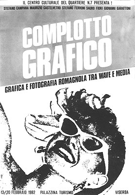 COMPLOTTO GRAFICO è un gruppo di operatori visuali formatosi a Rimini nel 1982, costituito da Stefano Campana, Maurizio Castelvetro, Stefano Ferroni, Sauro Fiori, Giovanni Tommaso Garattoni, Massimiliano Sirotti ed ha all'attivo diverse mostre incentrate sull'interazione tra produzioni estetiche e mass-media. (...) Complotto Grafico propone una rivisitazione aggiornata degli elementi che hanno costituito l'immagine della Riviera Adriatica, per realizzare un desiderio di "atmosfera" della quale si cerca una rievocazione non nel senso revivalistico del termine ma secondo un'ottica di condensazione emotiva delle suggestioni che, oggi, nella nascente era informatica, il MITO della Riviera Adriatica è ancora in grado di evocare. (...) Brani