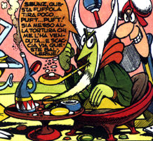 Qui sopra: lo Psicovidon. Sopra: il Gran Bazu seduto mentre fuffa una Fuffola. Si prega di notare anche i